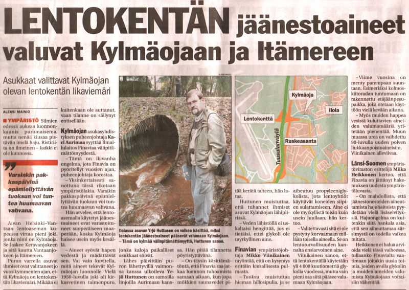 Helsinki-Vantaan lentokentän jäänestoaineet valuvat Kylmäojaan12.4.2008