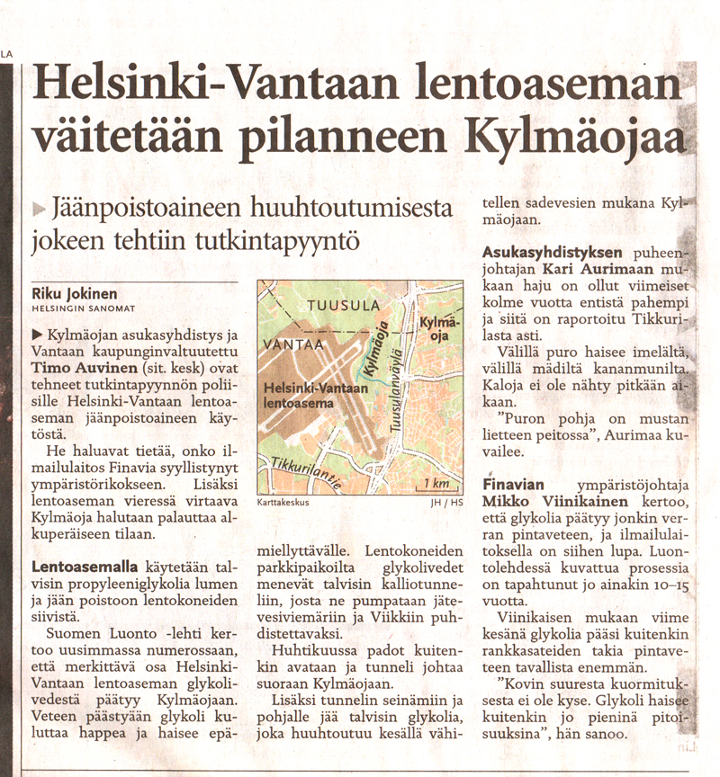 Helsinki-Vantaan lehtoaseman väitetään pilanneen Kylmäojaa23.4.2008