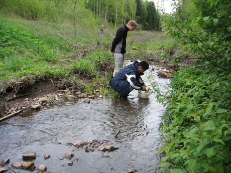 Ekskursio alkoi tutustumisella hautomoomme. Hautomolla lukiolaiset pääsivät samalla omin käsin haavimaan ja pakkaamaan istutettavat poikaset kuljetusta varten happipakkauksiin. Puroille päästyämme poikaset jaettiin oppilaille, jotka sitten istuttivat poikaset puroihin kasvamaan.