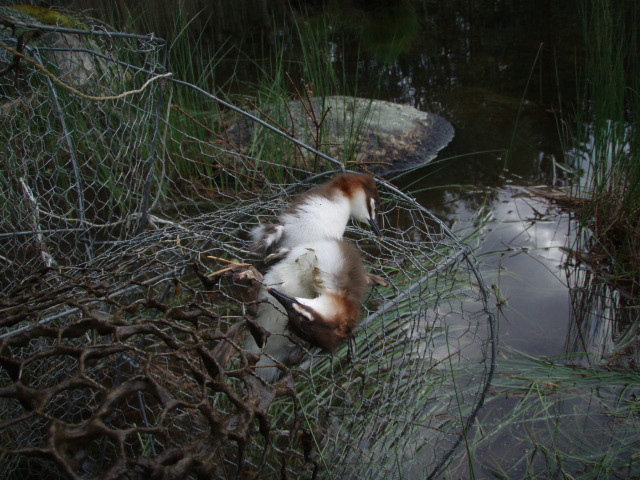 Yhteen puroon oli asetettu kalojen kulkuväylälle katiska ilman mitään pyydysmerkkejä. Se oli osaksi pinnan yläpuolella ilman, että suuaukkoa oli määräysten mukaisesti tältä osin suljettu. Tämän seurauksena katiskaan oli ajautunut koskelon poikasia. Emo oli katiskan lähistöllä hätääntyneenä. Mitään ei kuitenkaan enää ollut tehtävissä ja poikaset olivat menehtyneet katiskan verkkosilmiin kuvan mukaisesti.