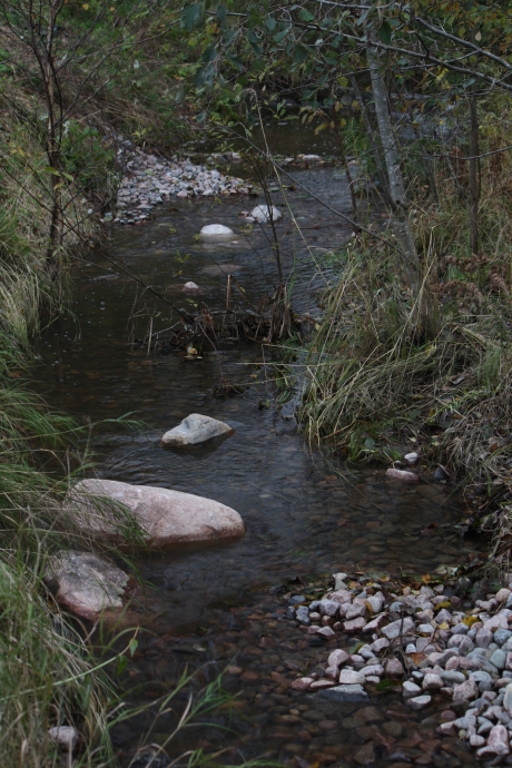 Kun loputkin sorat oli saatu uomaan kävimme pariin otteeseen pienen iskuryhmän kanssa levittelemässä soraa ja haravoimassa viimeiset kasanpohjat pois maastosta. Loppuviimeistelyn hoitaa sitten luonto itse syystulvien ja talven jäiden muodossa.
