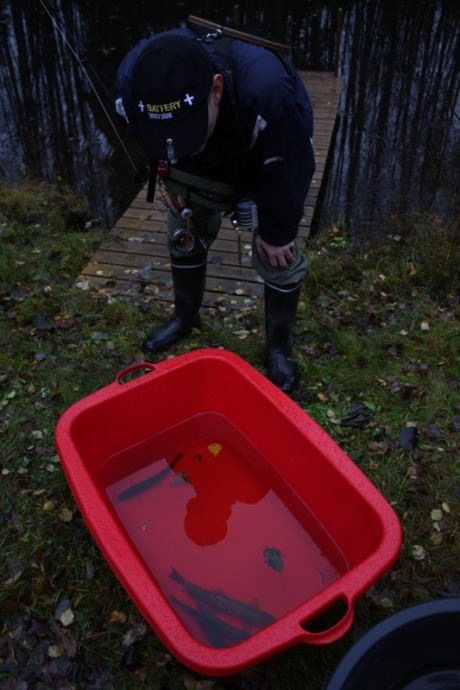 Samalla katsottiin, voisiko taimenista lypsää mätiä ja maitia ajatellen mätärasiaistutuksia Karjaanjoen vesistön muita kohteita (myös tähän tarvitaan vesialueiden omistajan ja kalatalousviranomaisten luvat). Osoittautui kuitenkin, että pyyntitapa – vapavälineet – valikoi tässä yhteydessä taimenista pääsääntöisesti jo kuteneet tai kudusta välivuotta pitäneet. Siksi hedelmöitettyä mätiä saatiin vain pieni koe-erä.