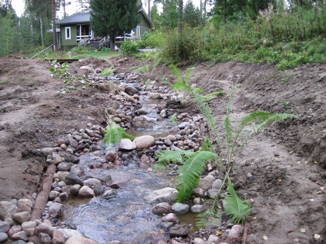 Loppuviimeistelyyn kuuluivat myös kuvasta näkyvät kasvi-istutukset rannoille. Ne antavat suojaa ja ravintoa sekä vankentavat rantaa.