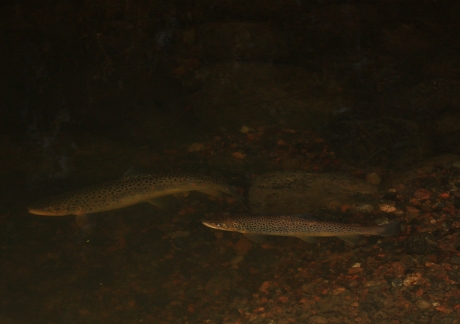 Tällaiseen paikkaan kannattaa palata uudelleen taskulampun kanssa illan alkaessa hämärtää, jolloin paikalle saattaa hyvinkin ilmestyä päivällä kateissa olleita taimenia. Hyvällä tuurilla pääsee aitiopaikalta seuraamaan kutuväreissä loistavien taimenten kututouhuja, joissa vesi roiskuu ja isotkin kalat ovat paikoin enemmän vedenpinnan ylä-, kuin alapuolella.