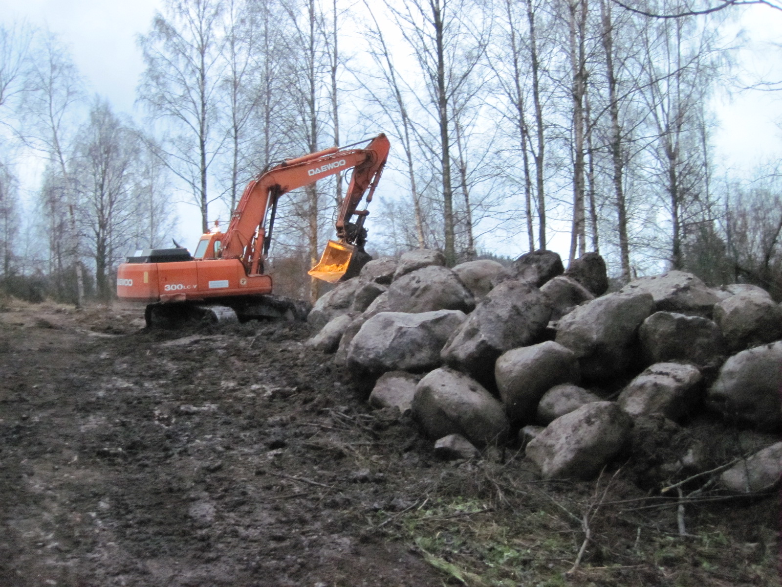 Kuvassa kalatie- ja kunnostuskiviä "työn alla" marraskuussa 2011 yhden Virhon tulevan kohteen liepeillä.