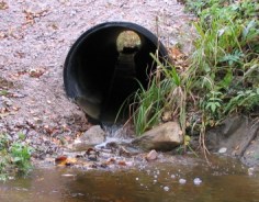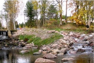 Tee mieluummin silta kuin tierumpu. Jos vaikkapa kustannussyistä joudut tekemään tierummun, varmista, että sen alapinta on vedenpinnan alapuolella myös kuivana aikana ja, että se on vaakasuorassa. Rummun halkaisijan tulisi olla vähintään 60 cm. Silloin se ei estä vesieläinten liikkumista. Maassamme on lukemattomia liian ylös sijoitettuja, jyrkkiä tai pieniä tierumpuja. Alla on kuvapari eräältä taimenpurolta. Vasemmassa kuvassa tierumpu on sijoitettu liian ylös.